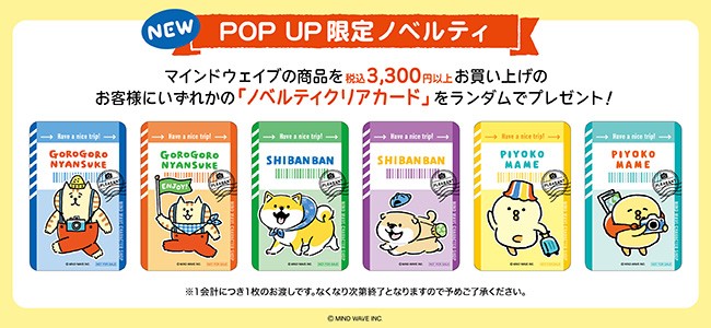 POP UPならではのお楽しみ、限定のノベルティもご用意しております。会場では巨大なしバンバンがお出迎え。ぜひこの機会にMIND WAVEの世界をお楽しみください。「MIND WAVE キャラクターショップ」