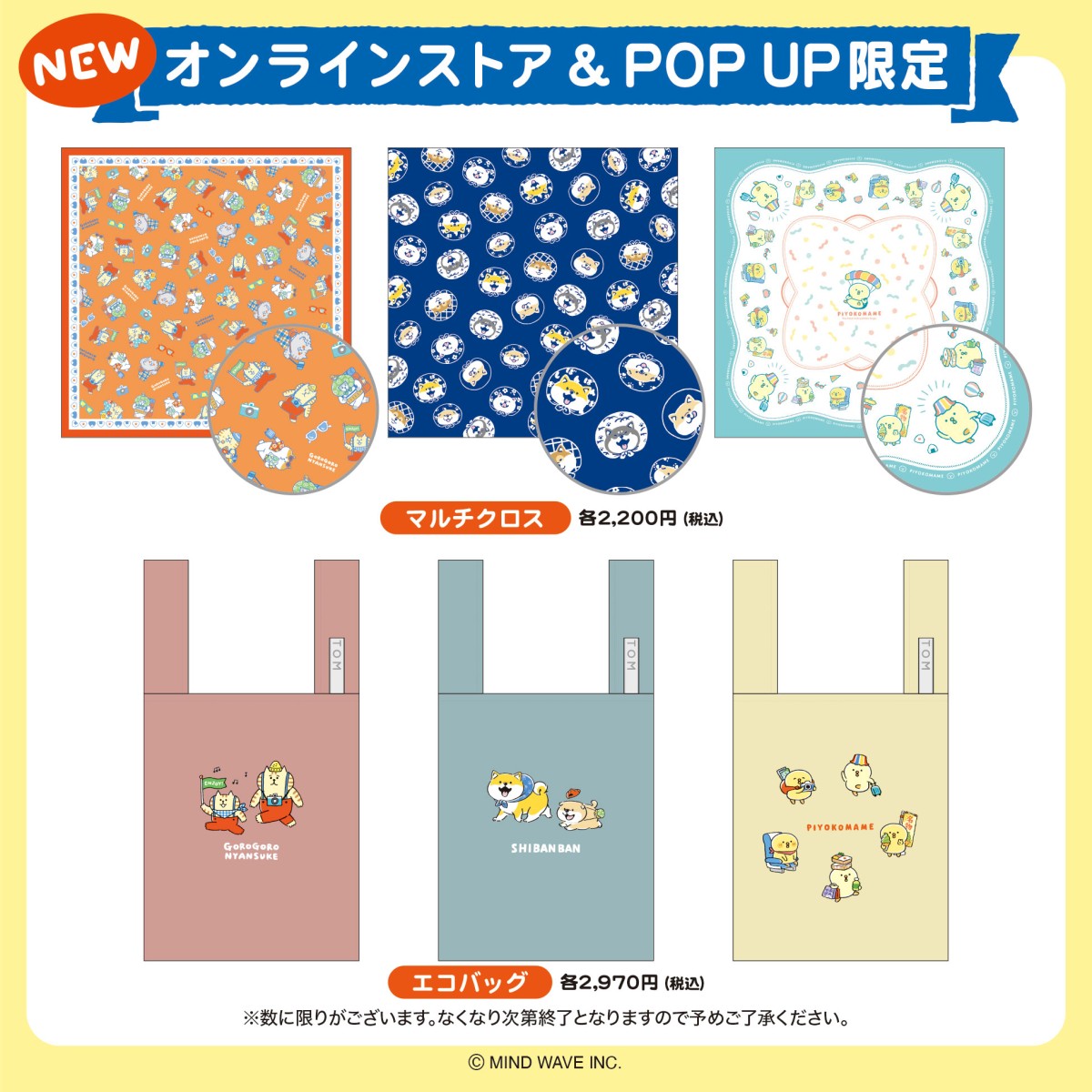 今回は中でも人気のキャラクターである「ごろごろにゃんすけ」「しばんばん」「ぴよこ豆」のグッズがインキューブ天神店4階に大集合。いつも見ることのできないPOPアップ限定商品や、オンライン限定商品をみて、ふれて、手に入れるチャンスです。