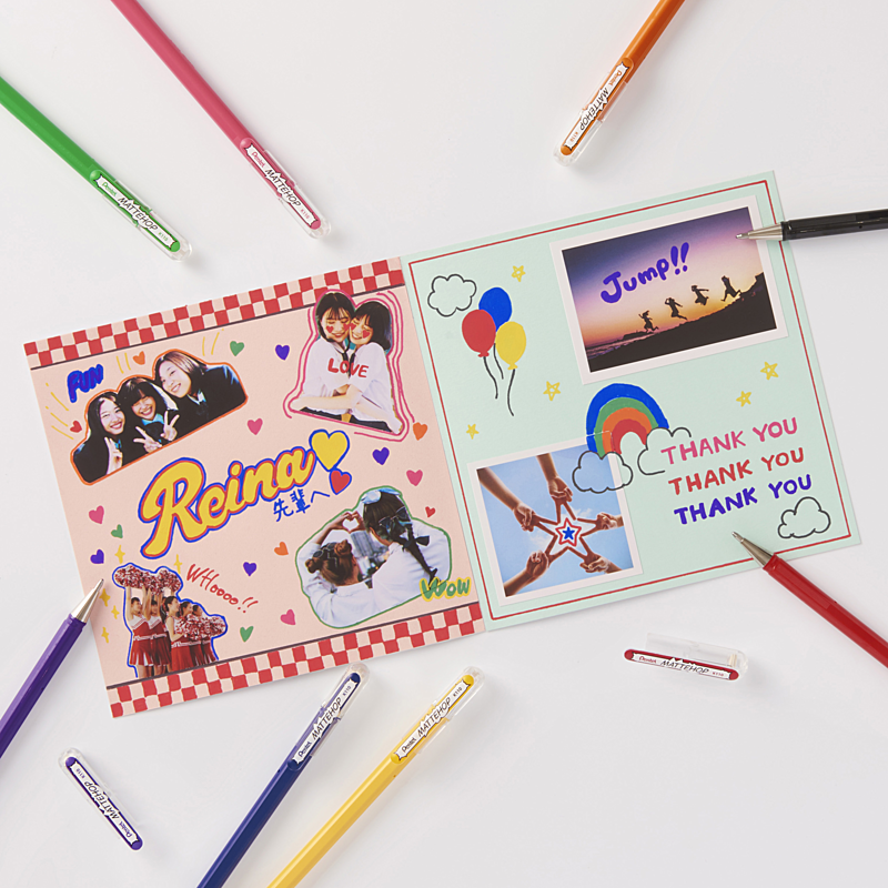 写真に直接書けるマットな質感のインキでイラストや文字がくっきり目立つボールペン「マットホップ」実際の書き心地や、おすすめの使い方などをレクチャーいたします。