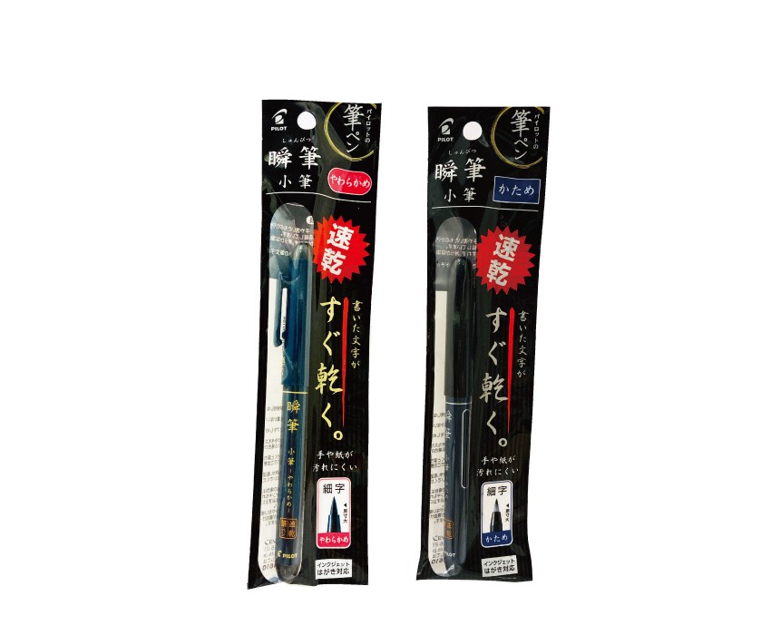 1秒で乾く速乾インク搭載で筆ペンが苦手な方に人気の瞬筆。「小筆」は、サインペン感覚で筆ペン経験がない方にもおすすめです。トメ・ハネ・ハライが表現できる<かため>と、ソフトタッチで抑揚が表現しやすい<やわらかめ>があります。
