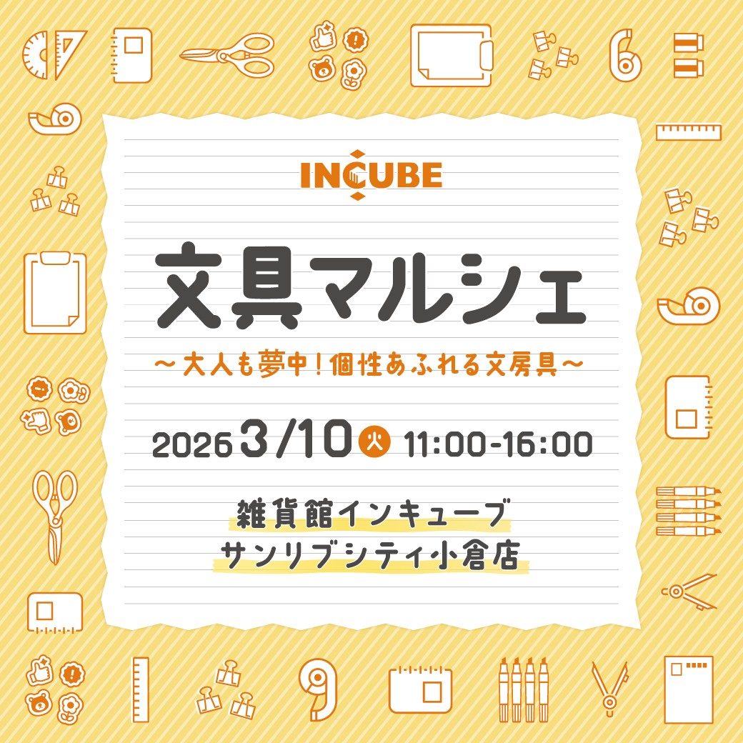 サンリブシティ小倉店 フェスタコート (インキューブ前)にて「文具マルシェ」を開催いたします。