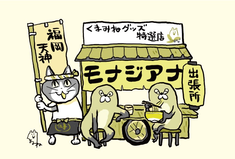 モナジアナ出張所 雑貨館インキューブ天神店 開催期間: 2026.3.25-5-7 ©︎くまみね工房 「ヨシ!」と指差しポーズを決めた猫の絵がネットミームになった、イラストレーター・くまみねさんが描く、人気キャラクターたちのポップアップショップを開催いたします。 購入者にはノベルティもご用意しておりますので、ぜひこの機会にお立ち寄りください。 【日程】2026年3月25日(水)〜5月7日(木) 【場所】インキューブ天神店4F ノベルティ ノベルティ:ポストカード(2種類) 税込み2,000円以上お買いあげ毎に1枚プレゼント。 ※数に限りがある為、なくなり次第終了となります。ご了承くださいませ。