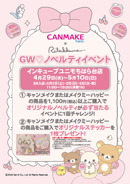 【ユニモちはら台店】キャンメイク×リラックマ GWノベルティイベント