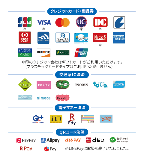 天神店では下記の決済サービスがご利用頂けます。